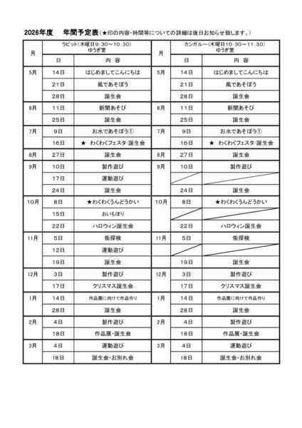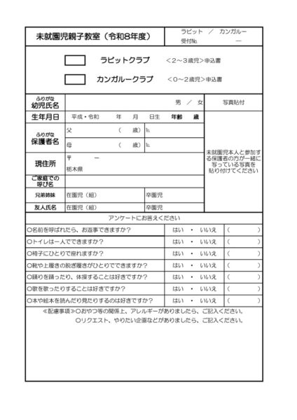未就園児親子教室 ラビットクラブ・カンガルークラブ