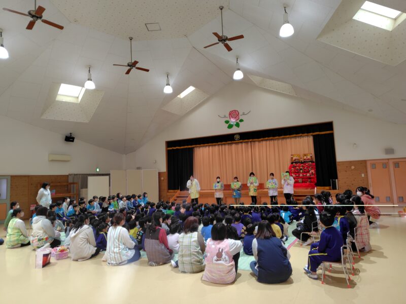 幼児部さんは遊戯室で、乳児部さんは保育室に集まりましたm(__)m